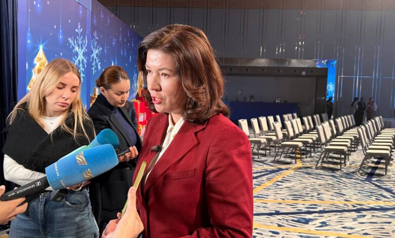 — «Ежегодно мы проводим от имени Президента ёлку для наших детей — тех, кто достиг успехов в учебе, спорте и искусстве, а также для ребят из социально уязвимых слоев населения. В этом году здесь собрались 100 детей из всех 20 регионов страны. Завтра аналогичные ёлки от имени Президента пройдут и в областных центрах, куда приедут дети из отдаленных аулов и районов», — сказала министр.